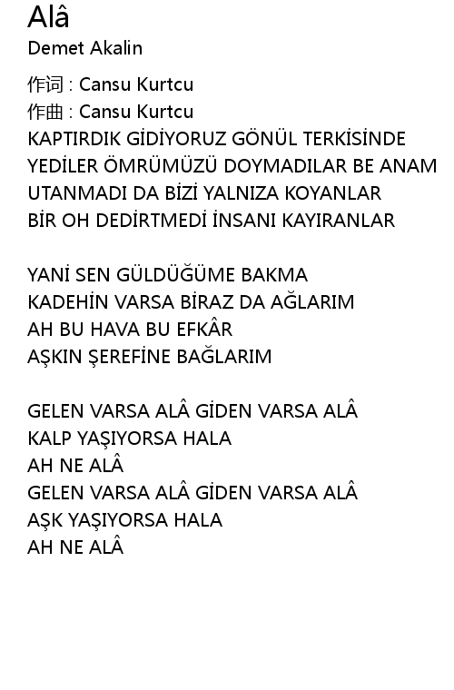 | Song | Alâ |