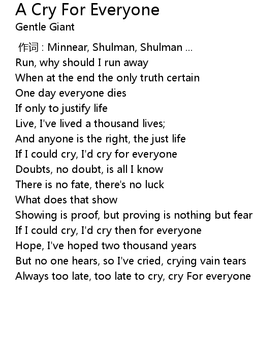 | [03:23.75] | Always too late, too late to cry, cry For everyone |