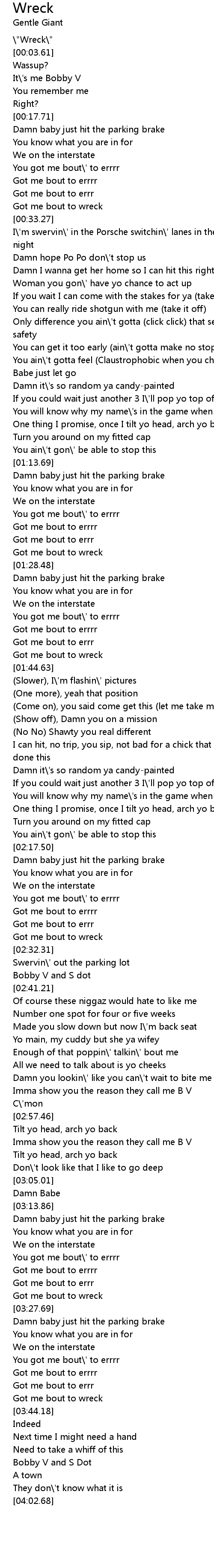 Got me bout to wreck |
