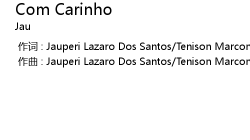 | [00:00.000] | 作曲 : Jauperi Lazaro Dos Santos/Tenison Marcone Del Rei Santana |