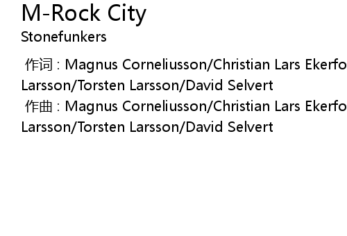 | [00:00.000] | 作曲 : Magnus Corneliusson/Christian Lars Ekerfors/Emrik Larsson/Torsten Larsson/David Selvert |