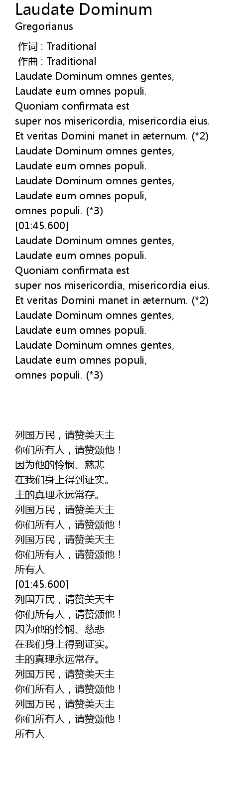 | [03:00.755] | Laudate Dominum omnes gentes, |