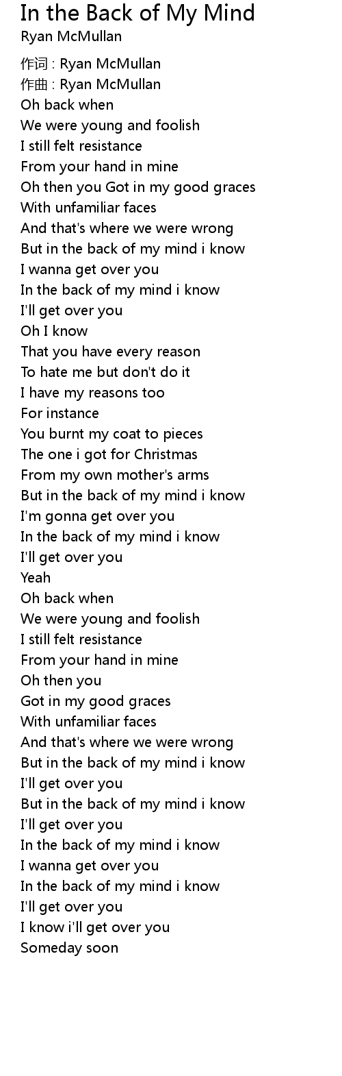 | In the back of my mind i know | |