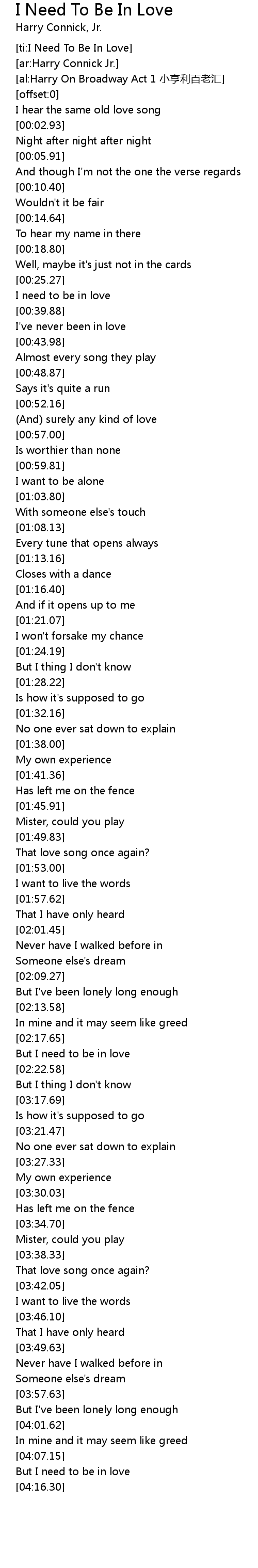 | [02:18.36] | But I need to be in love |