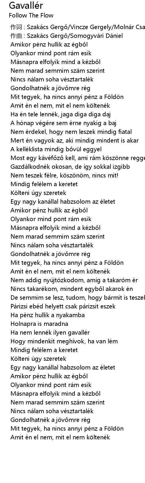 | [00:00.000] | zuò cí : Szaká cs Gerg Vincze Gergely Molná r Csaba |