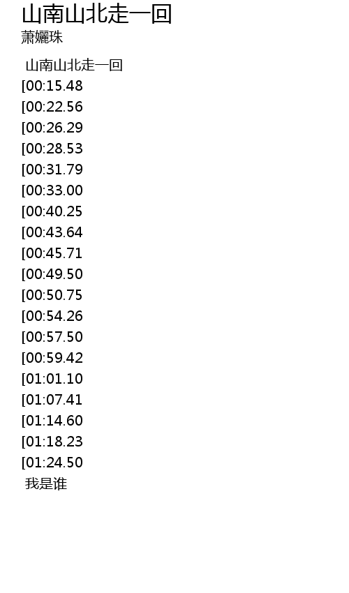 | [01:46.32][00:22.56] | 山南山北走一回 |