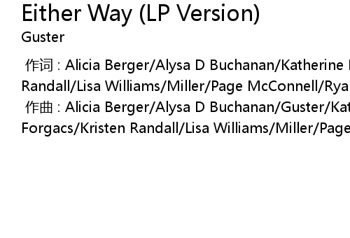 | [00:00.000] | zuo qu : Alicia Berger Alysa D Buchanan Guster Katherine Forgacs Kristen Randall Lisa Williams Miller Page McConnell Ryan Miller |