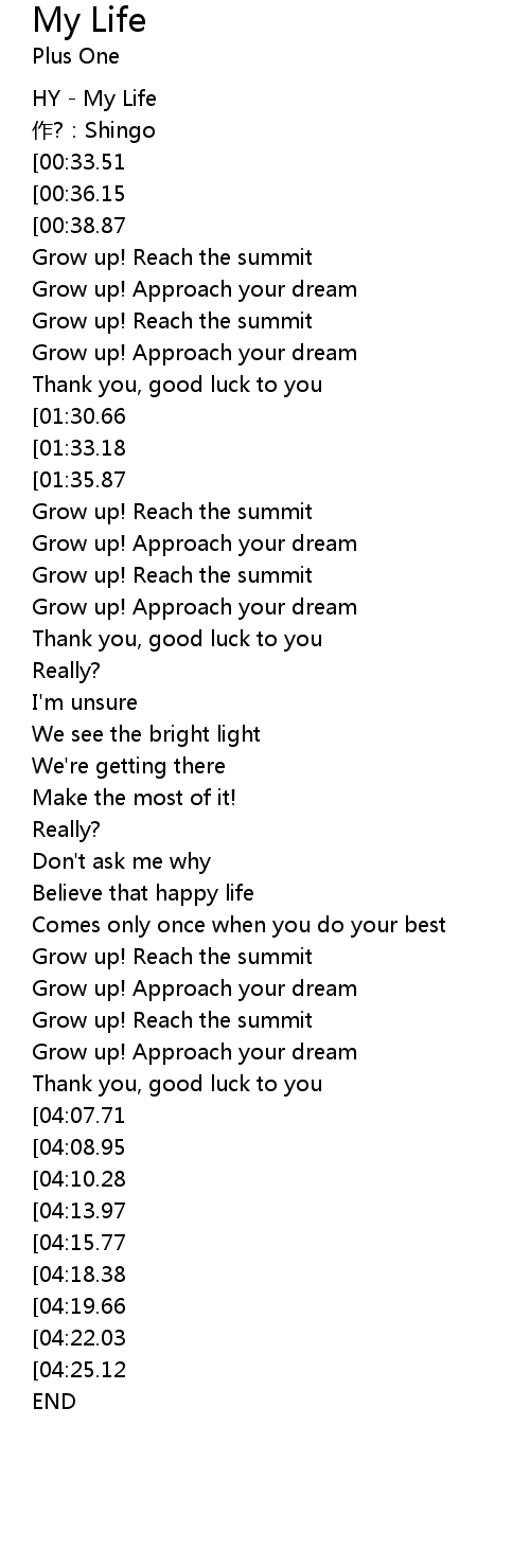 | [04:46.90][04:25.12] | Comes only once when you do your best |