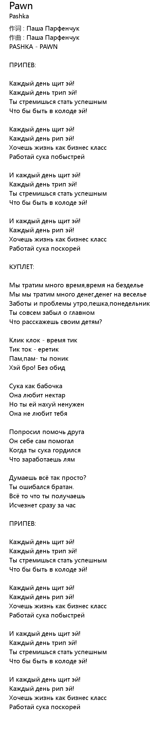 作词 : Паша Парфенчук |