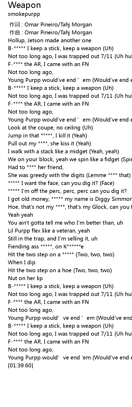 | [01:26.45] | B-***** I keep a stick, keep a weapon (Uh) |