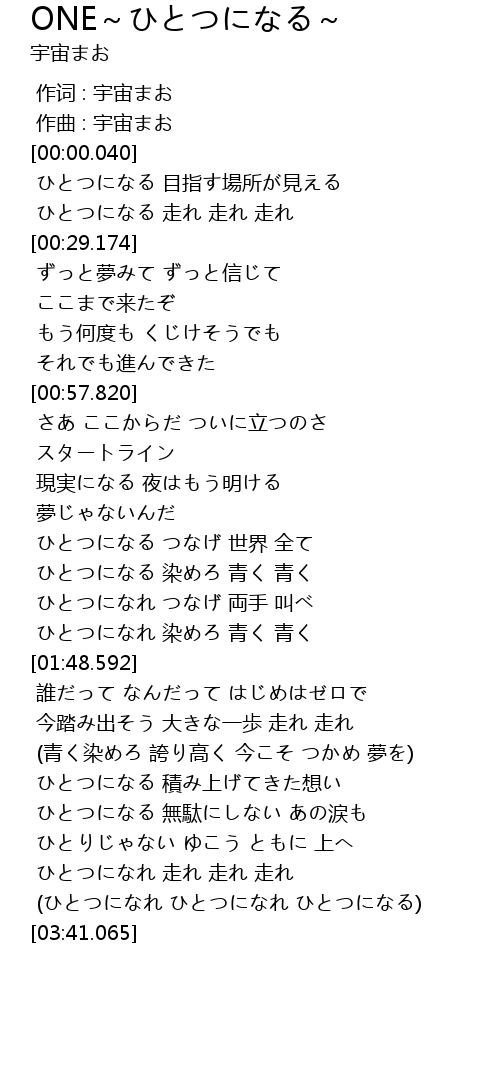 | [02:38.144] | ひとつになる 積み上げてきた想い |
