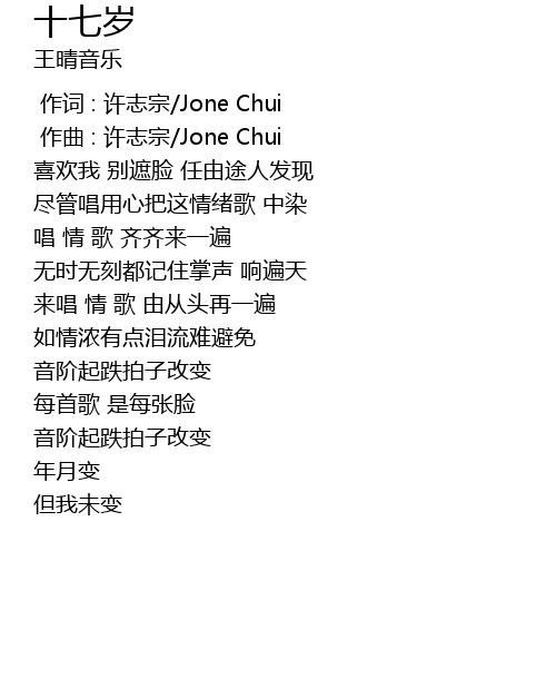 | [00:01.000] | 作曲 : 许志宗/Jone Chui |