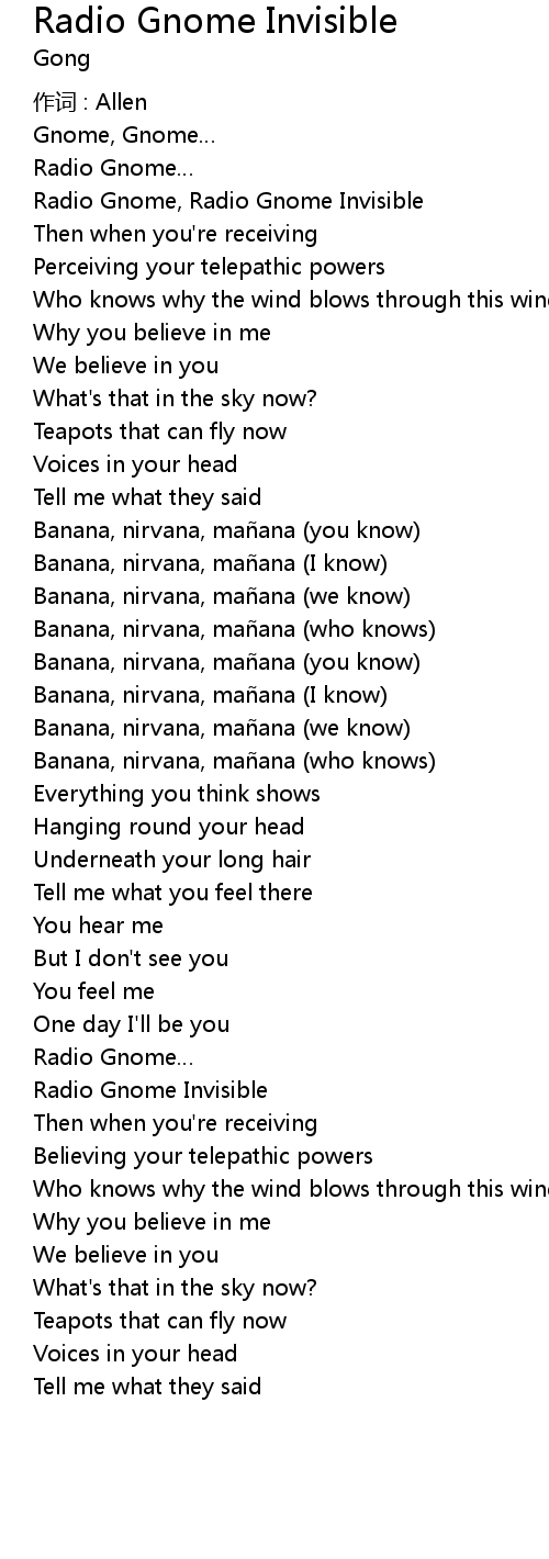 | Song | Radio Gnome Invisible |