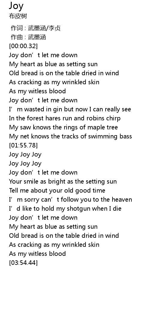 | [00:59.80] | Joy don’t let me down |