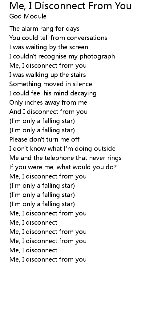 Me, I disconnect from you |