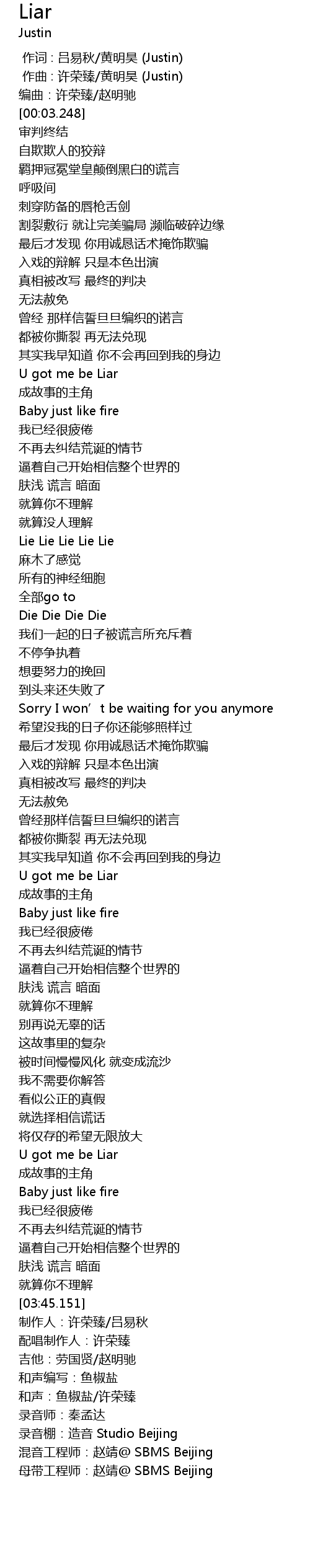 | [03:18.368] | U got me be Liar |