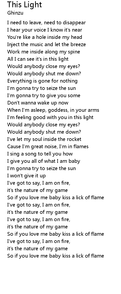 So if you love me baby kiss a lick of flame |