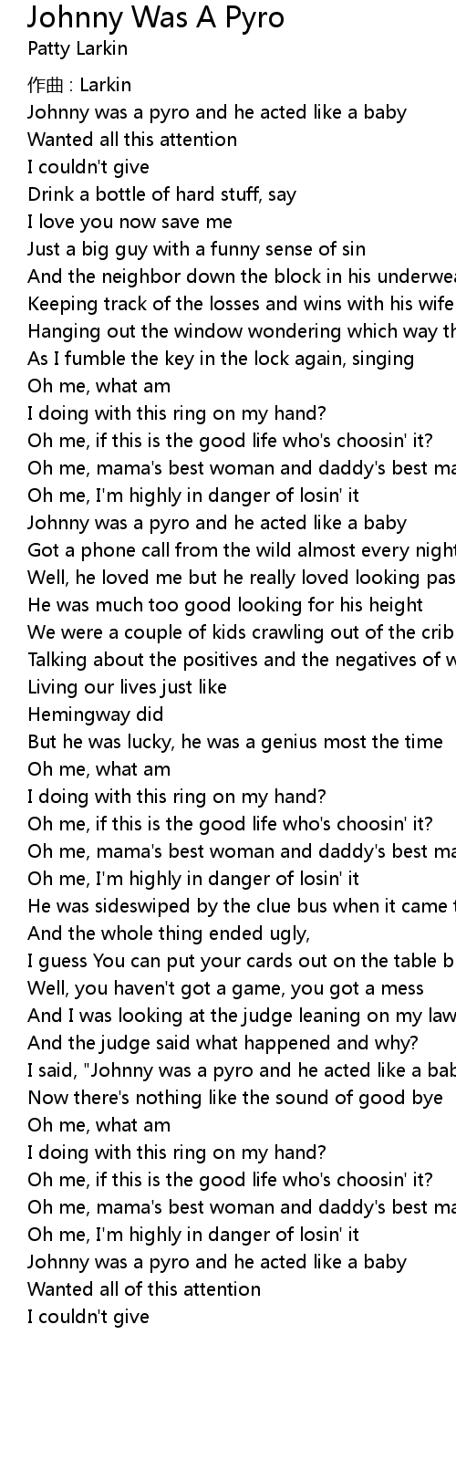 | I said, "Johnny was a pyro and he acted like a baby" | |