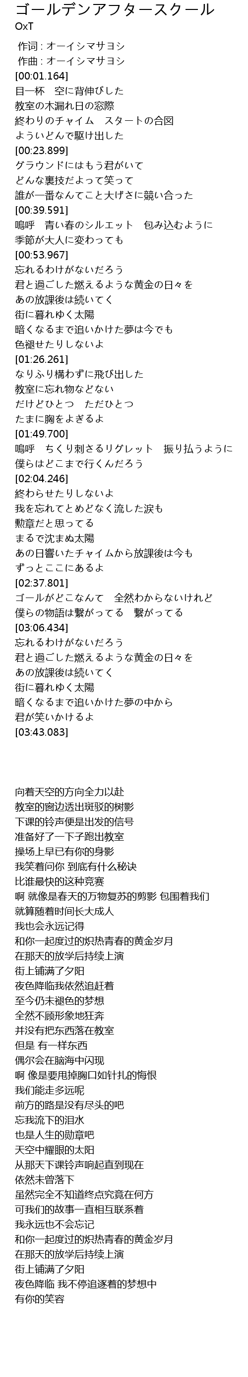| [00:16.140] | 終わりのチャイム スタートの合図 |