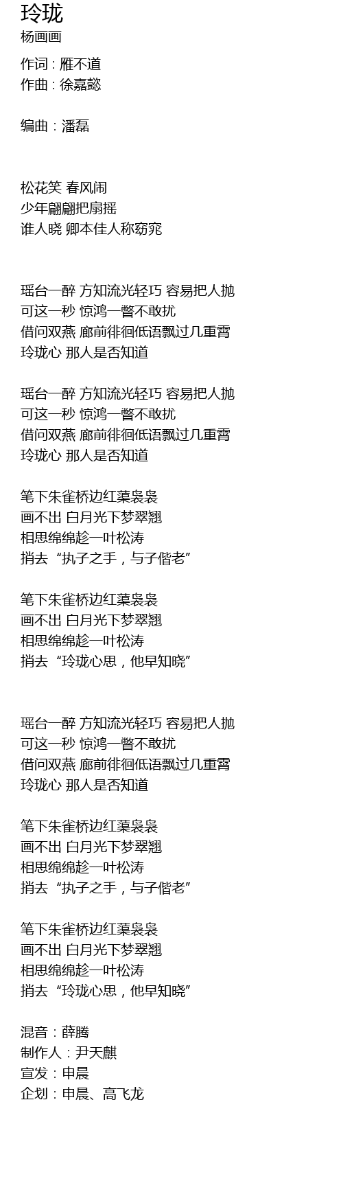 | 玲珑心 那人是否知道 | |