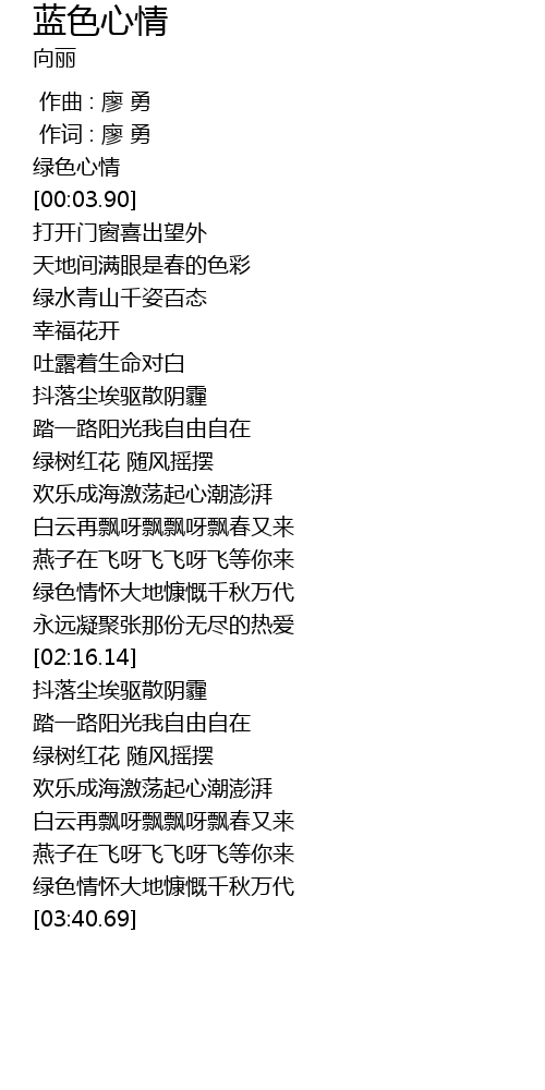 | [01:34.59] | 白云再飘呀飘飘呀飘春又来 |