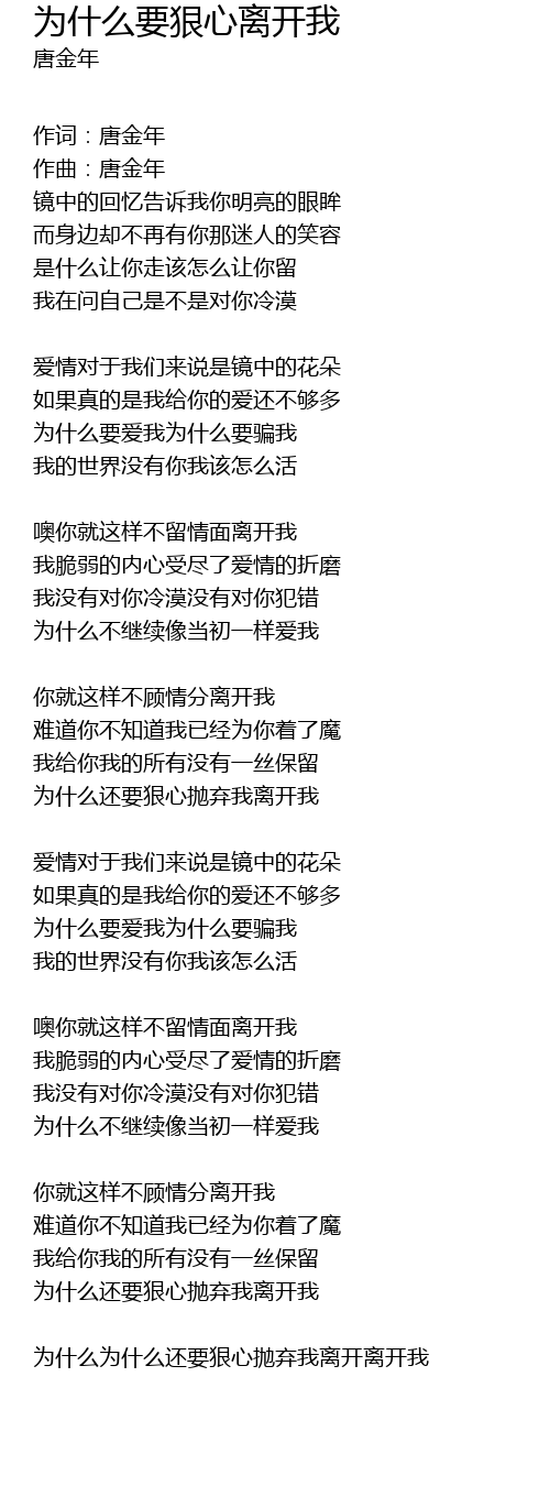 | 为什么为什么还要狠心抛弃我离开离开我 |