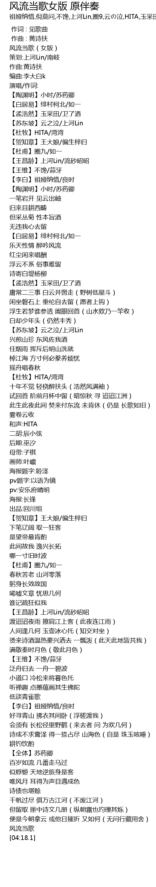 风流当歌女版 原伴奏 feng liu dang ge nv ban yuan ban zou Lyrics
