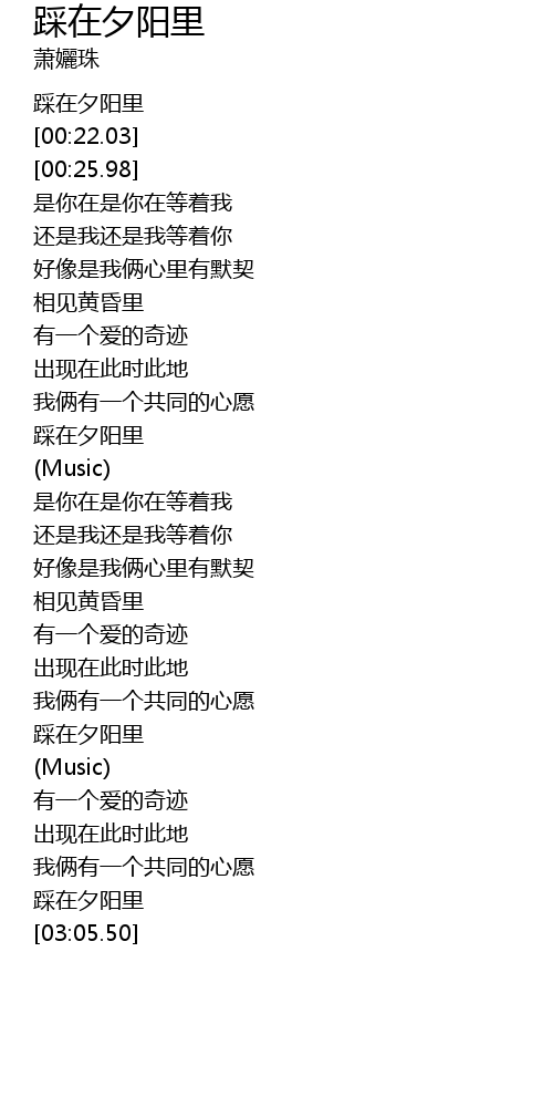 | [00:27.80] | shì nǐ zài shì nǐ zài děng zhe wǒ |