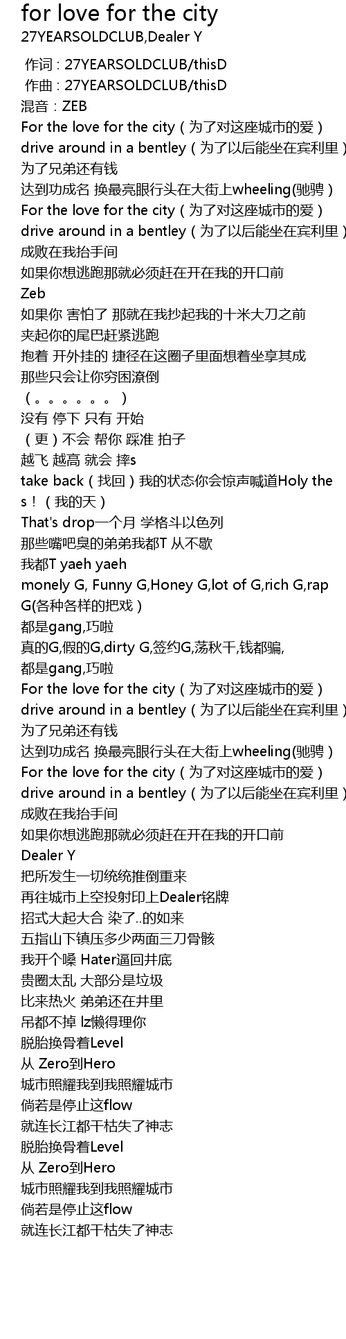 | [01:15.047] | For the love for the city(为了对这座城市的爱) |