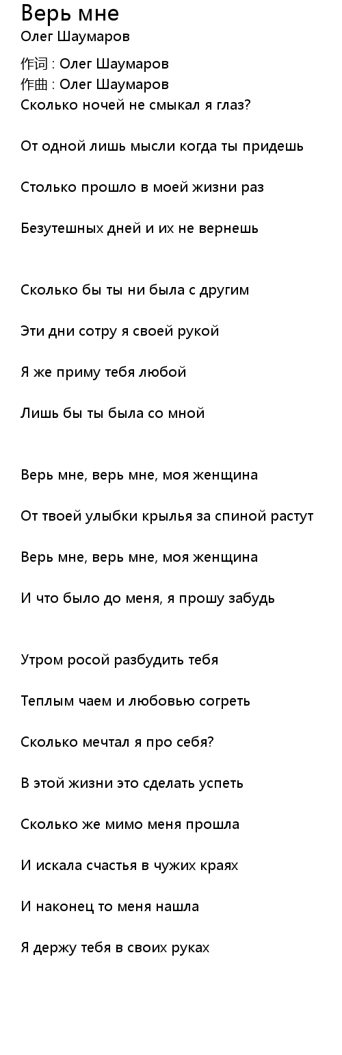 Верь мне, верь мне, моя женщина |