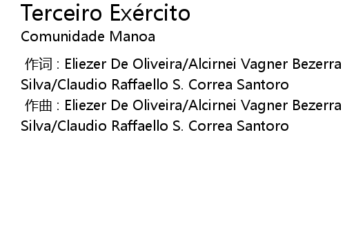 | [00:00.000] | zuo qu : Eliezer De Oliveira Alcirnei Vagner Bezerra da Silva Claudio Raffaello S. Correa Santoro |