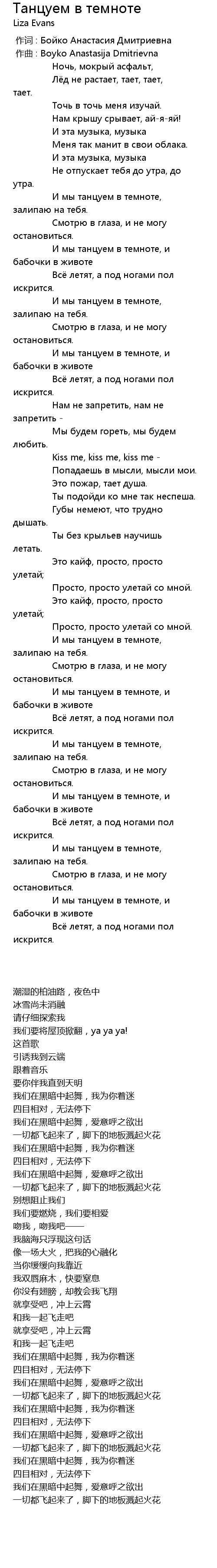 作词 : Бойко Анастасия Дмитриевна |