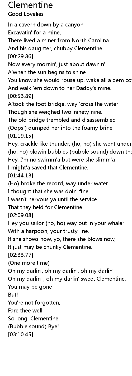 Oh my darlin' , oh my darlin' sweet Clementine, |