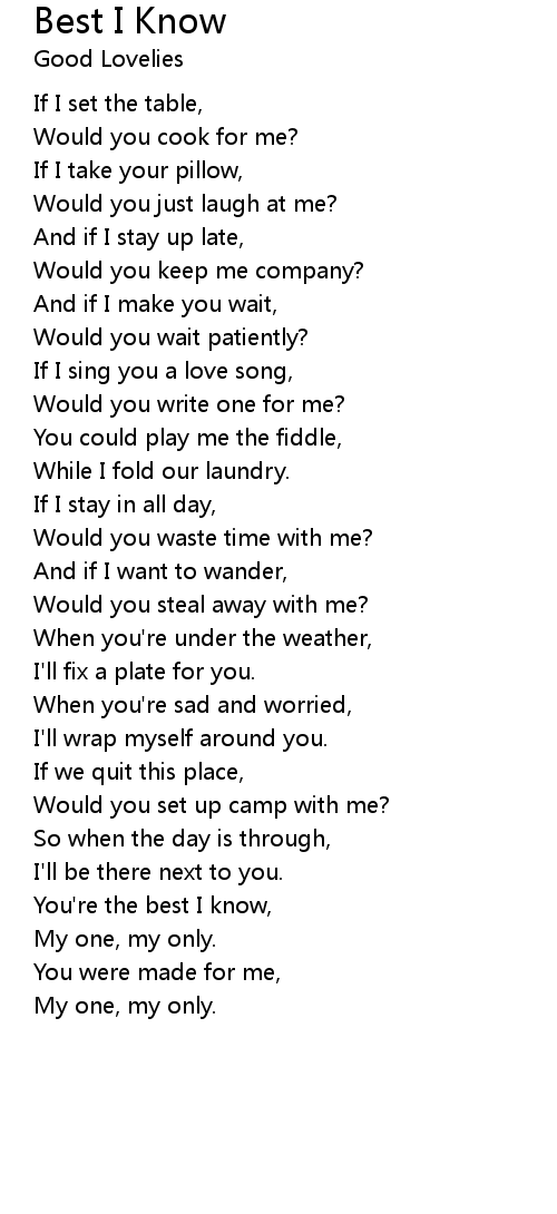 You're the best I know, |