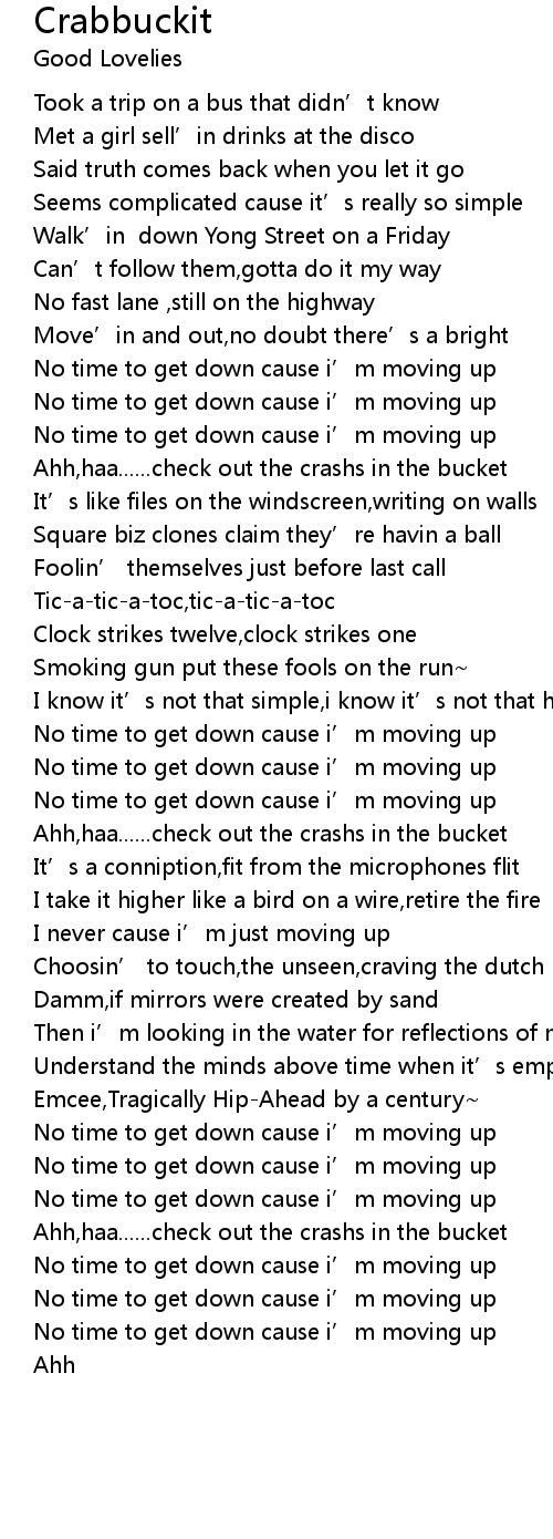| [02:06.000] | Ahh,haa......check out the crashs in the bucket |