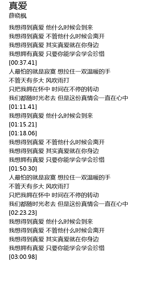 | [01:20.32] | 我想得到真爱 不管他什么时候会离开 |