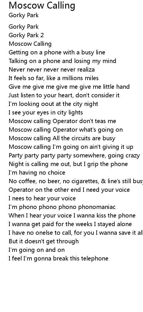 Moscow calling Operator don't teas me |