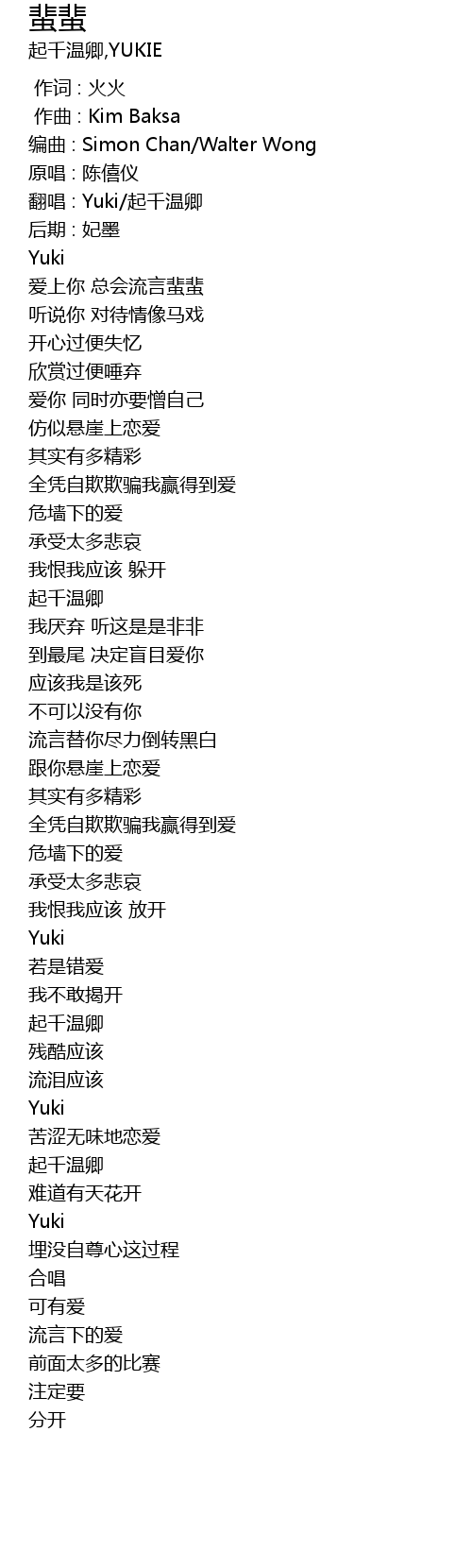 | [00:07.443] | 翻唱 : Yuki/起千温卿 |