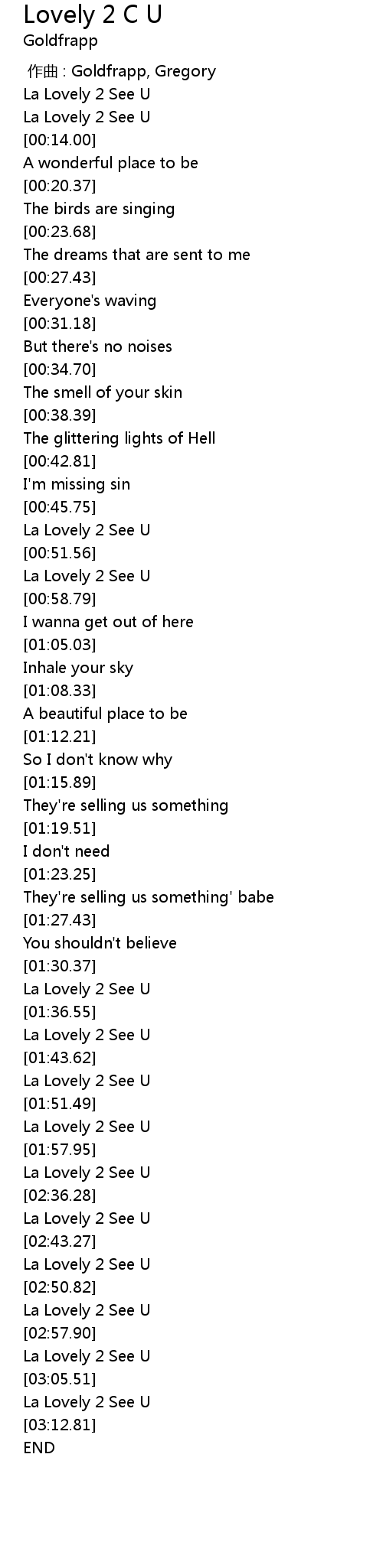 | [00:00.00] | 作曲 : Goldfrapp, Gregory |