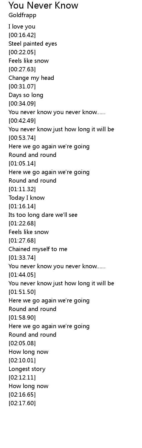 | [00:36.42] | You never know you never know |