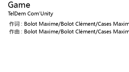 | [00:00.000] | 作曲 : Bolot Maxime/Bolot Clément/Cases Maxime/Correia Michael |