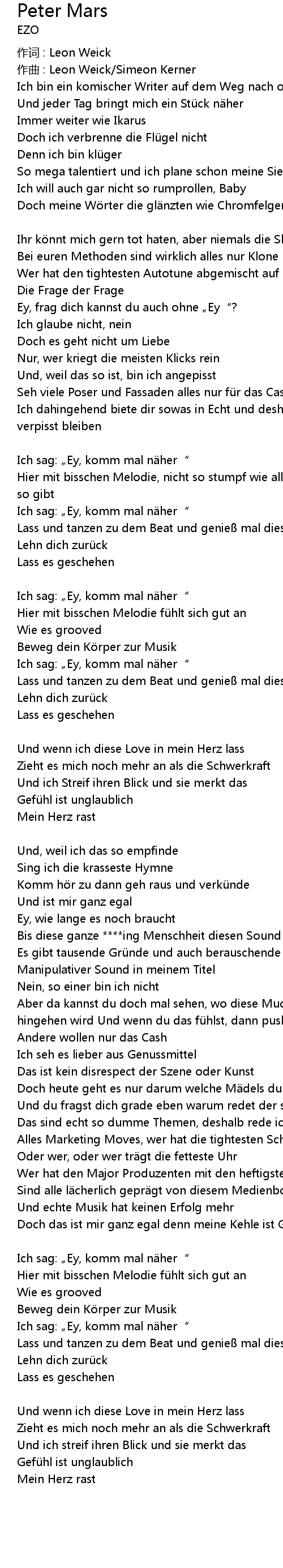 | Doch meine W rter die gl nzten wie Chromfelgen | |