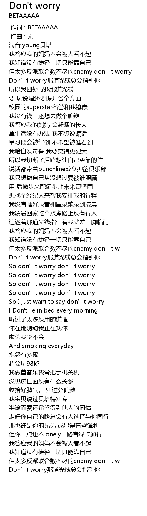 | [01:58.378] | So don' t worry don' t worry |