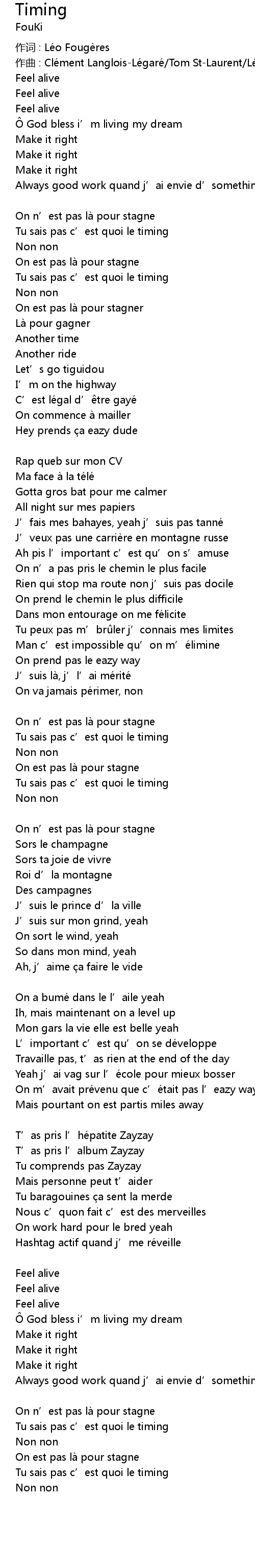 | zuò qǔ : Clé ment LangloisLé garé Tom StLaurent Lé o Fougè res | |
