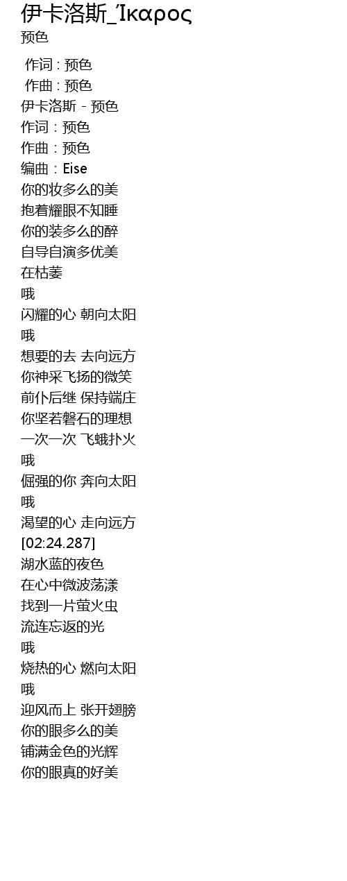 | [00:00.262] | 伊卡洛斯 - 预色 |