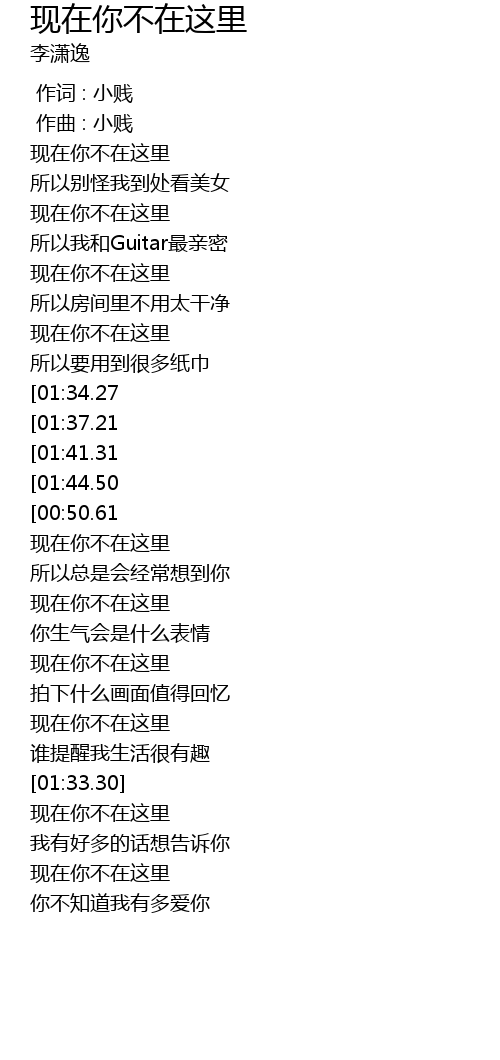 | [01:48.63][01:34.27][00:36.66] | 现在你不在这里 |
