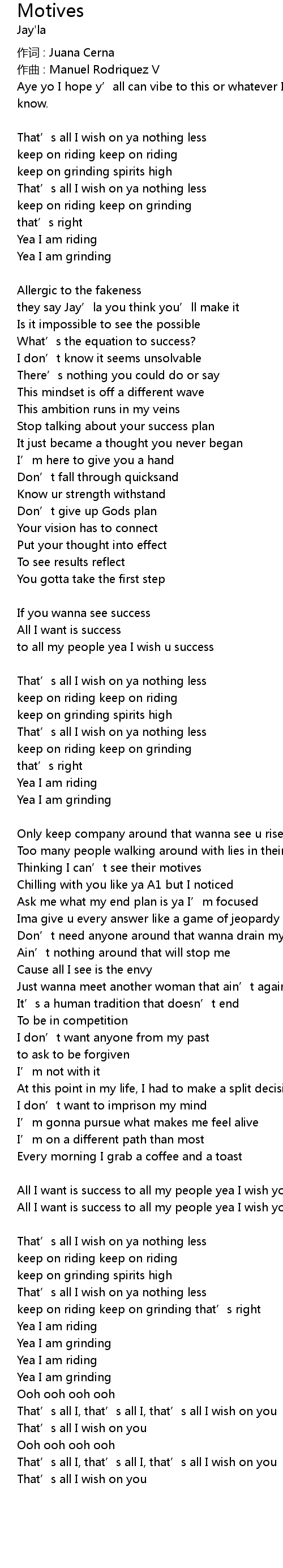 | All I want is success to all my people yea I wish you success | |