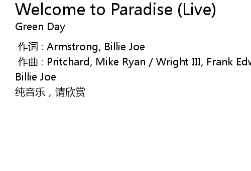 | [00:01.000] | 作曲 : Pritchard, Mike Ryan / Wright III, Frank Edwin / Armstrong, Billie Joe |