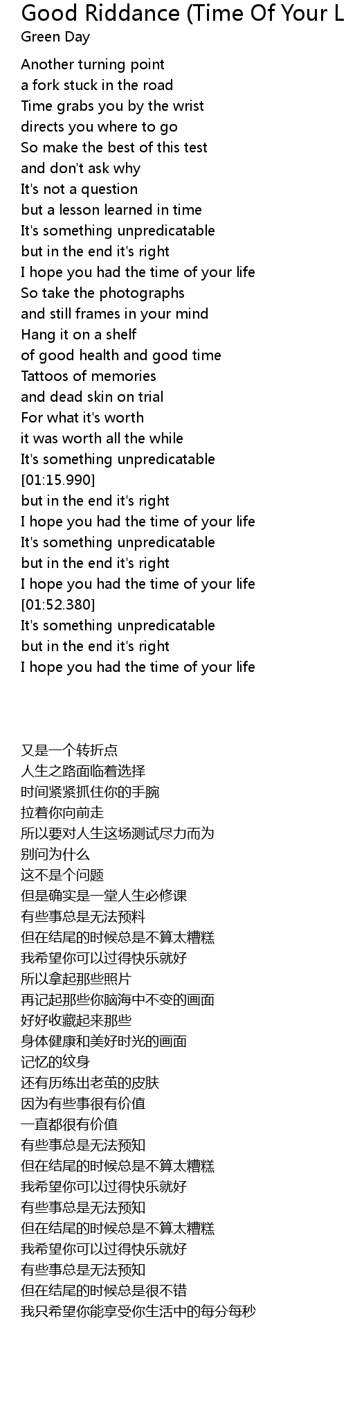 Good Riddance (Time Of Your Life) [Live] Lyrics