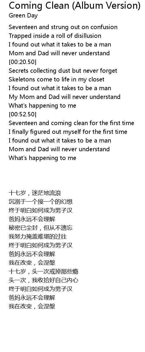 | [01:06.50] | Seventeen and coming clean for the first time |